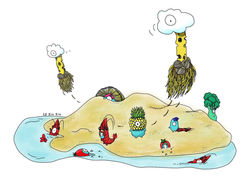 In the process of creation, the South Korean concept is to draw that which others do not draw and to make use of simple colour schemes, to evoke happiness and think what others do not think of in order to create stories pertinent to themselves. Within her paintings of an altered state Korea, unfamiliar people, filled with hate drift along the streets, going about their business can be found.